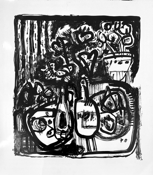 A superb graphic artist, working in a vast array of techniques. His paintings borrow the jagged, broken, and intense lines of drypoint. The subjects in his works are mere images, behind which something more can be discerned—the fluidity of human emotions. The author's established and recognizable visual language possesses a distinctive "disharmonious harmony," an organic chaos that almost becomes abstract.