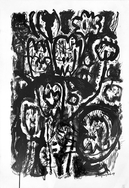 Airat Teregulov's ink works borrow the jagged, broken, and tense lines of the drypoint technique. The subjects in his works are mere images, behind which something more can be discerned—the fluidity of human emotions. The author's established and recognizable visual language possesses a distinctive "disharmonious harmony," an organic chaos that almost becomes abstract.