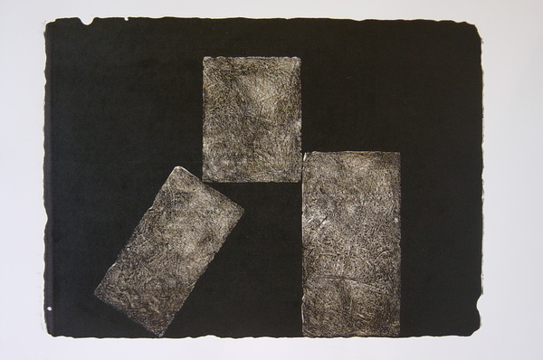 The lithographic "Megaliths" reflect the artist's enduring interest in the early stages of cultural development. But Rinat Minnebaev initially conceived this series after the events of September 11, 2001. The central theme of these works is balance, a frozen moment of fragile and precarious sensation.