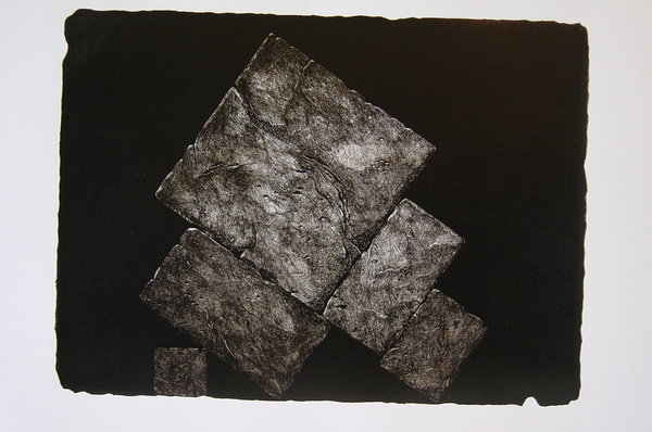 The lithographic "Megaliths" reflect the artist's enduring interest in the early stages of cultural development. But Rinat Minnebaev initially conceived this series after the events of September 11, 2001. The central theme of these works is balance, a frozen moment of fragile and precarious sensation.