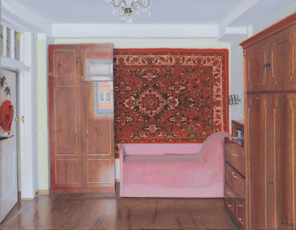 Одна из последних работ художника которая отсылает к проекту десятилетней давности, удивительным образом продолжая и развивая его. Противопоставляясь опустошенности оставленных пространств в проекте «Ленина 3.15» жизнь в этой тончайшей по технике работе пастелью берет верх. С квартирой, как и с ковром, который должен был быть оставлен на милость новым хозяевам, было решено не расставаться. И вот, спустя десятилетие автор пишет все туже стену с тем же ковром, но обстановка уже другая. Работа была представлена на выставке «Мечты о доме», в Нижегородском Арсенале (Пушкинский музей) весной 2025 года.