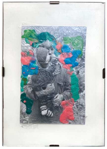 Materials: archive photos, plasticine, polyethylene on paper