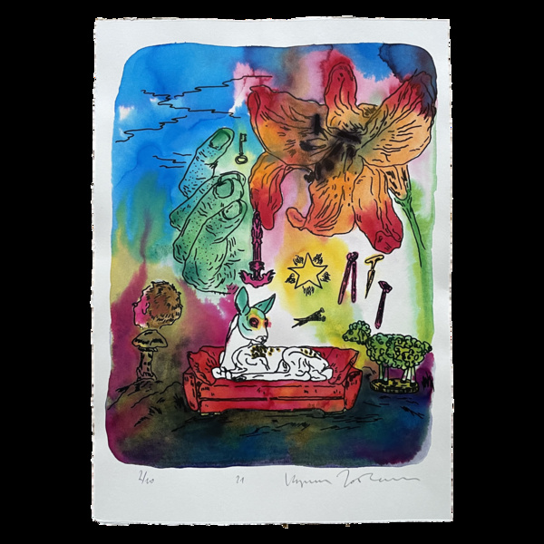 Materials: risography, hand-finished with watercolor
