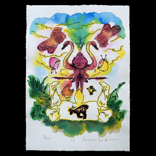 Техника: Ризография + Акварель
